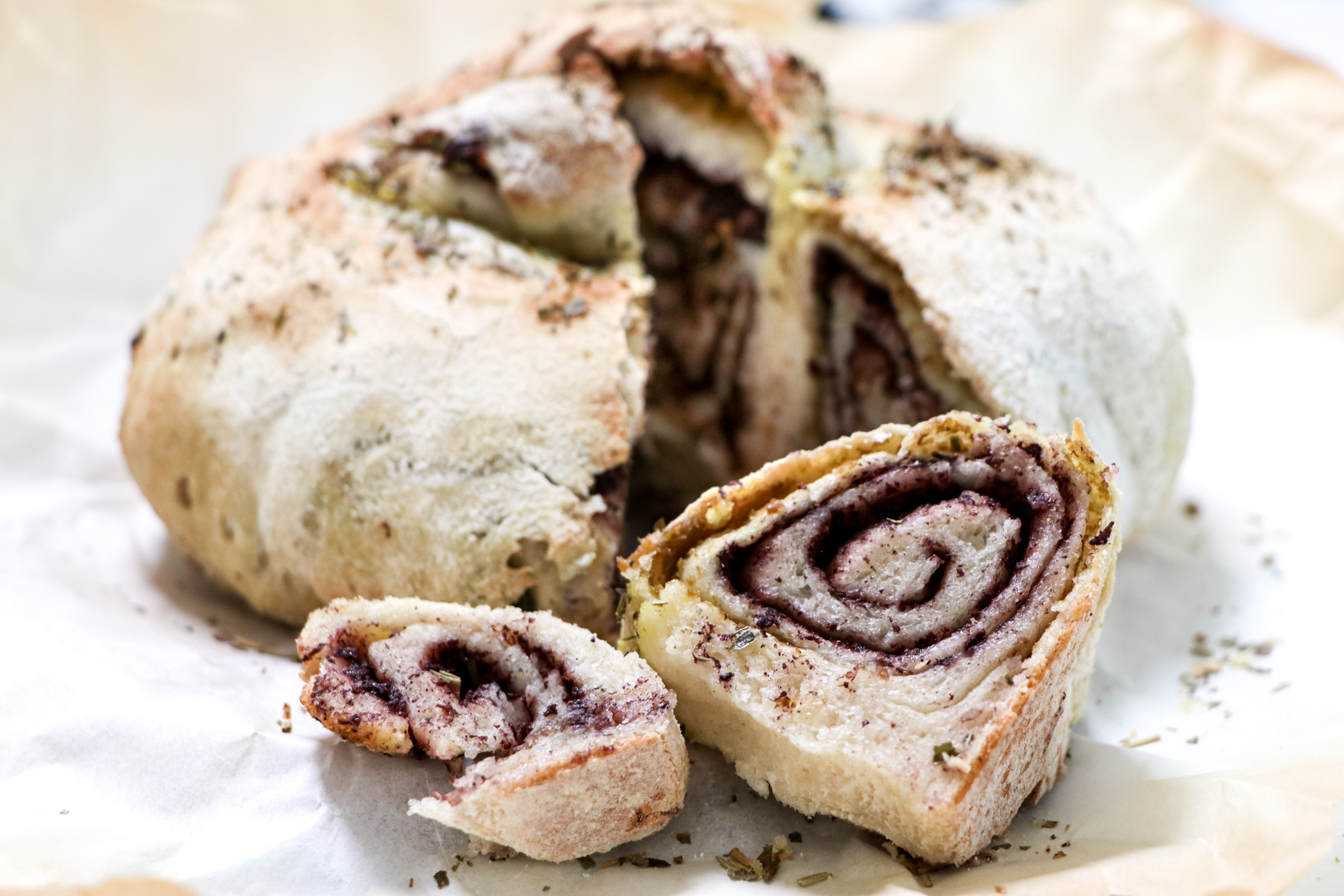 Bereiten Sie saftig glutenfreies Brot dalmatinischen Stil mit Dida Boža schwarzen und grünen Oliven Brotaufstriche.